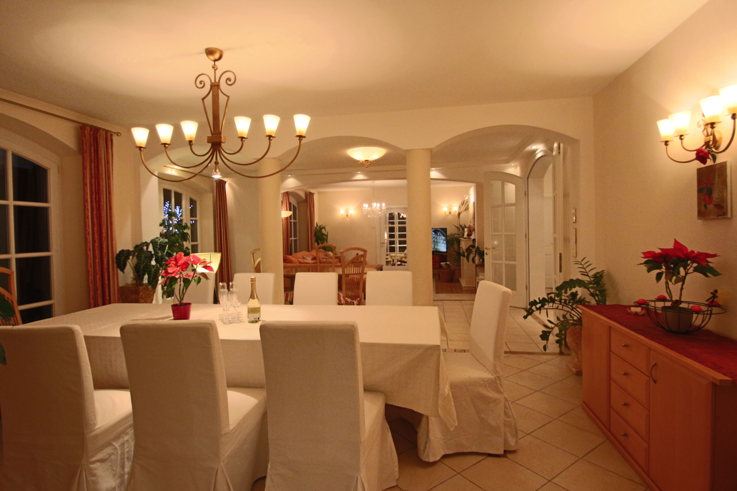 Spacious built-in fridge and additional free-standing fridge/freezer combination with plenty of space for the weekly shop, dishwasher, fully automatic coffee machine for whole beans, filter coffee machine, Nespresso coffee machine, toaster, blender, juicer, electric kettle, extensive cookware (pressure cookers, pans, pots and saucepans of all sizes for every need, some even in copper) and kitchen utensils of all kinds, serving trolley on wheels, generous serving dishes with countless individual items and glasses for every conceivable need.
